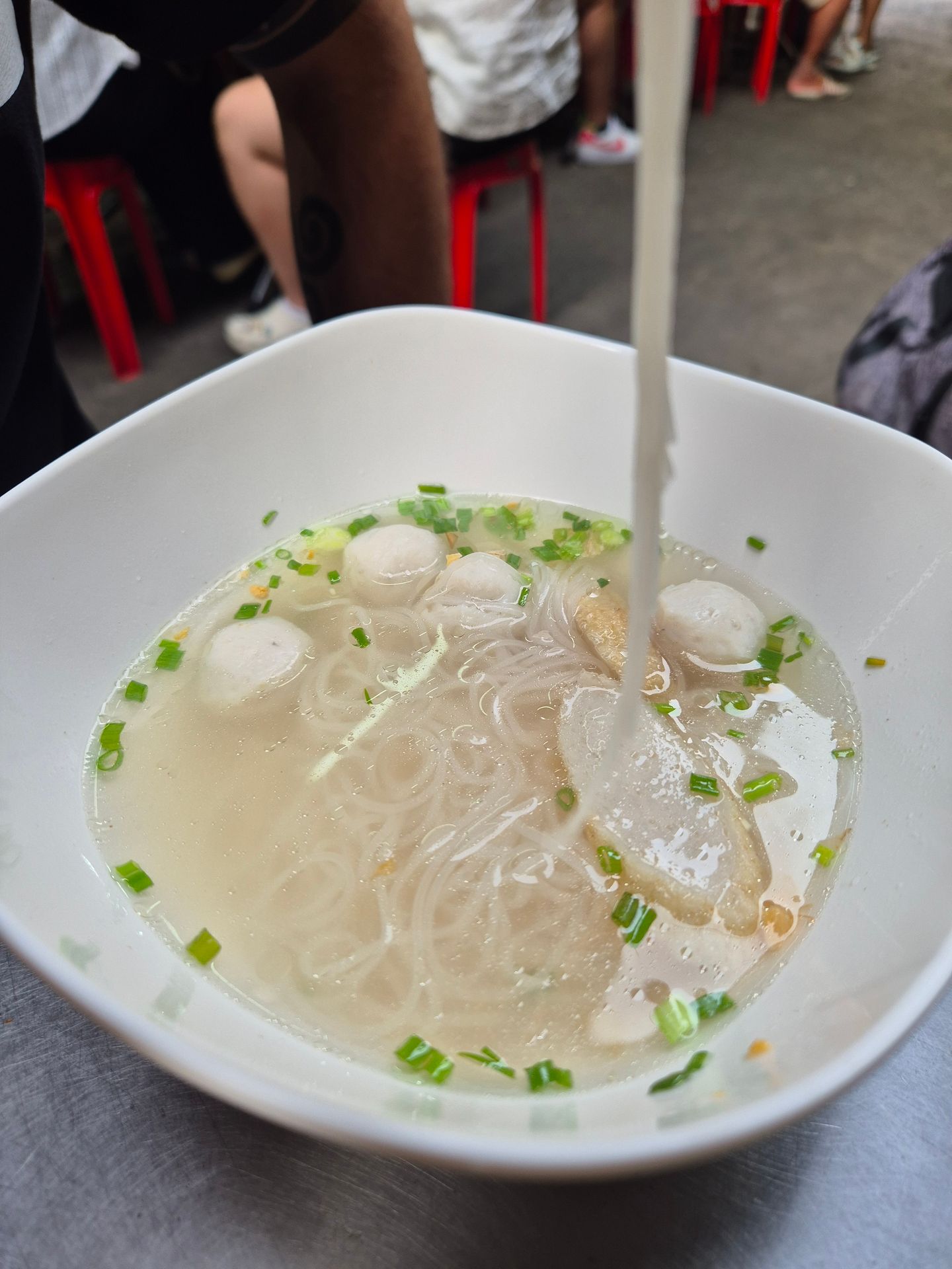 - Lim Lao Ngow Fishball Noodle🔗 € or Lim Lao Sar Fishball Noodle🔗 €: Two different spots, run by the same owner, both serving fantastic fishballs.