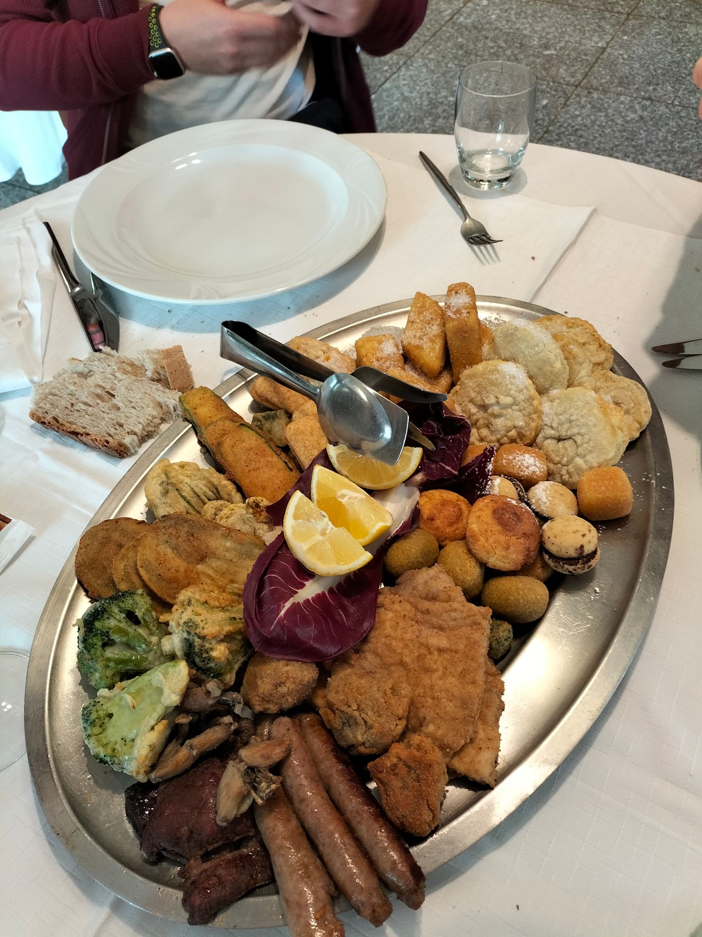 Fritto misto alla piemontese is one of Piedmont’s most intriguing and historic dishes—a generous platter of both sweet and savory bites, all lightly fried to golden perfection. Traditionally, it includes an eclectic mix: pieces of veal, sausage, seasonal vegetables, amaretti, semolino “milk squares,” and even fruit, creating a surprising yet harmonious combination of flavors. It’s a celebration dish, rich and playful, offering a true taste of the region’s culinary creativity.